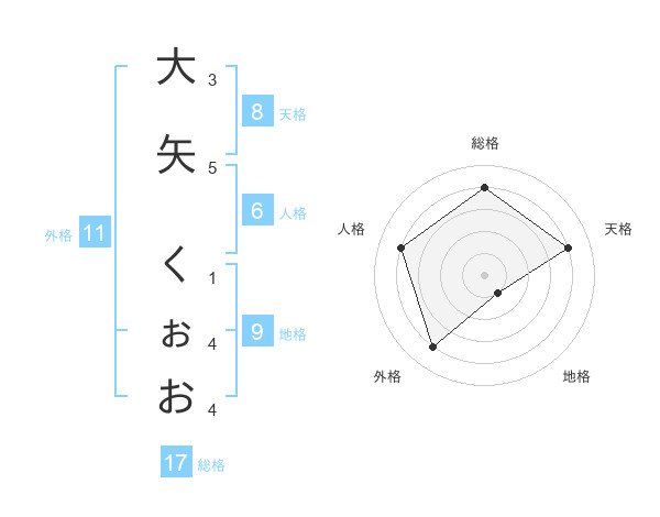 大矢 くぉおさんを姓名の画数から五運を鑑定