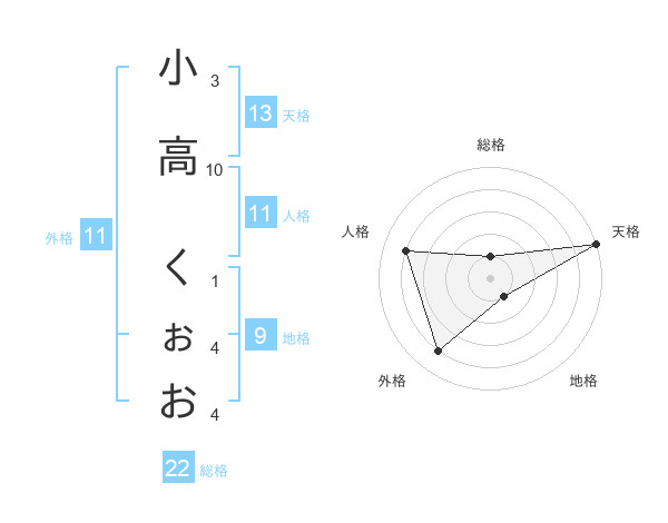 小高 くぉおさんを姓名の画数から五運を鑑定
