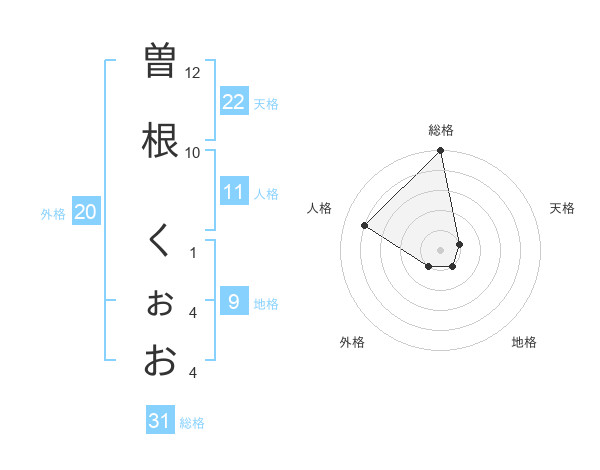 曽根 くぉおさんを姓名の画数から五運を鑑定