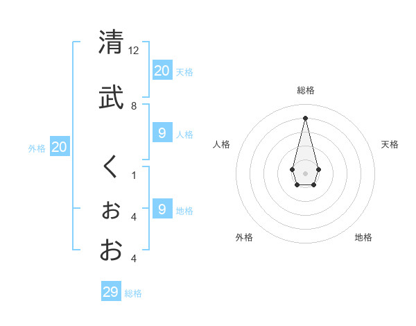 清武 くぉおさんを姓名の画数から五運を鑑定