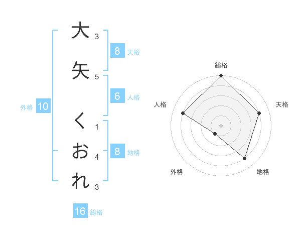 大矢 くおれさんを姓名の画数から五運を鑑定