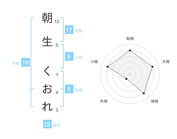 朝生 くおれさんを姓名の画数から五運を鑑定
