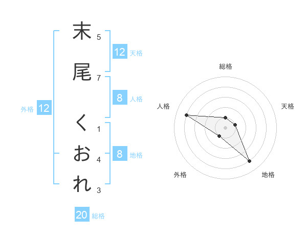 末尾 くおれさんを姓名の画数から五運を鑑定