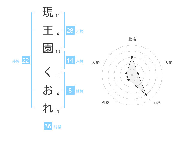 現王園 くおれさんの天格は28画の1点!