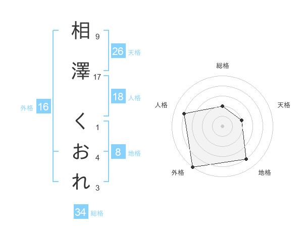 相澤 くおれさんを姓名の画数から五運を鑑定