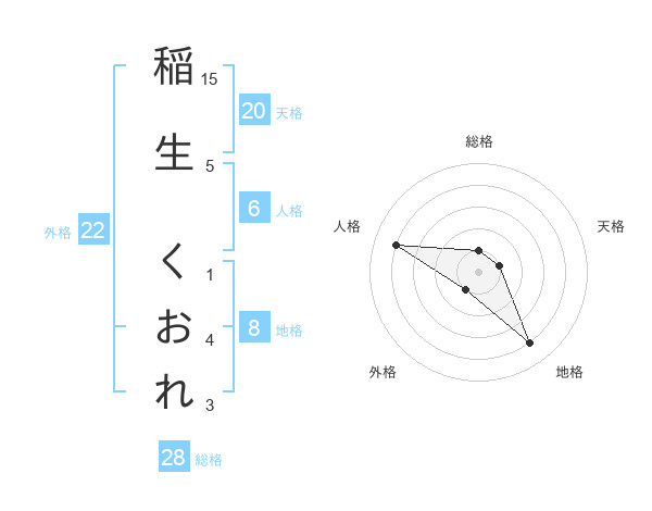 稲生 くおれさんの天格は20画の1点!