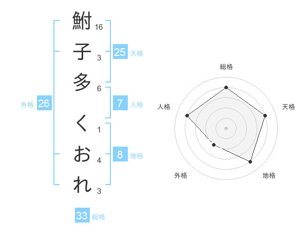 鮒子多 くおれさんの総格は33画の4点!