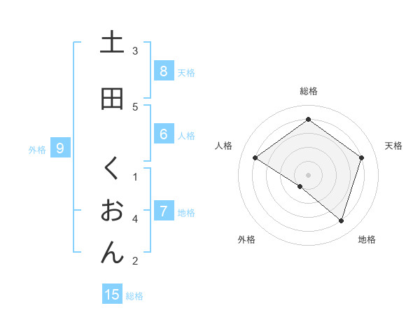 土田 くおんさんの総格は15画の4点