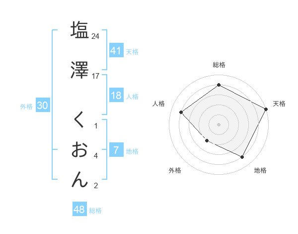 塩澤 くおんさんを姓名の画数から五運を鑑定