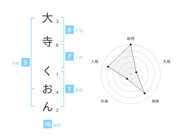大寺 くおんさんを姓名の画数から五運を鑑定