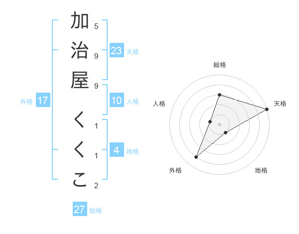 加治屋 くくこさんを姓名の画数から五運を鑑定