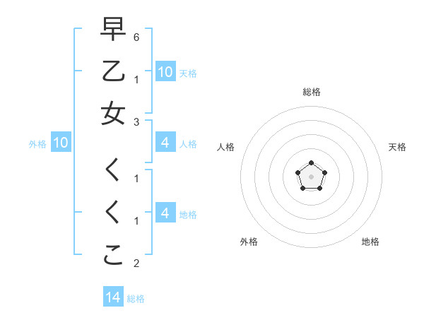 早乙女 くくこさんを姓名の画数から五運を鑑定