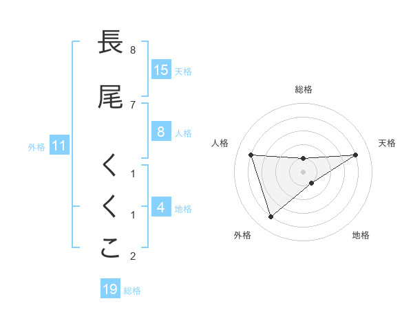長尾 くくこさんを姓名の画数から五運を鑑定