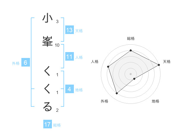 小峯 くくるさんの天格は13画の5点!