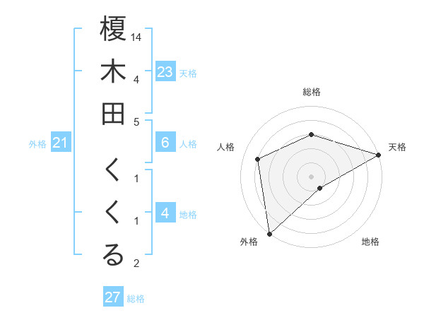 榎木田 くくるさんの天格は23画の5点!