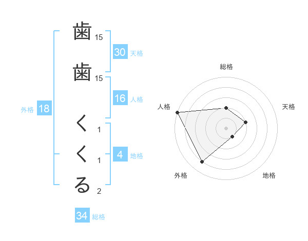 歯歯 くくるさんの総格は34画の2点!