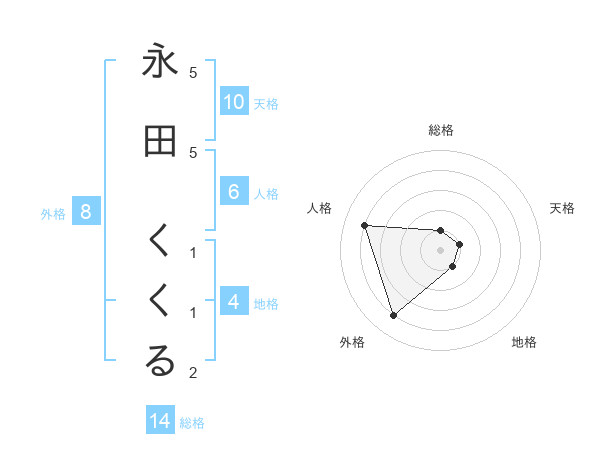 永田 くくるさんの総格は14画の1点!