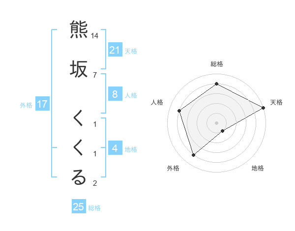 熊坂 くくるさんの天格は21画の5点!