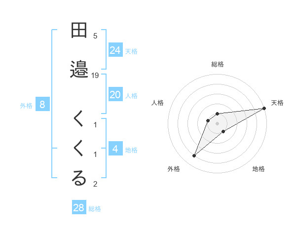 田邉 くくるさんを姓名の画数から五運を鑑定