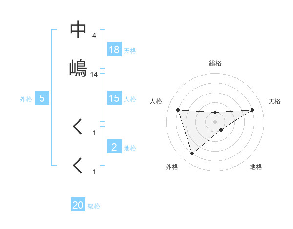 中嶋 くくさんの総格は20画の1点!