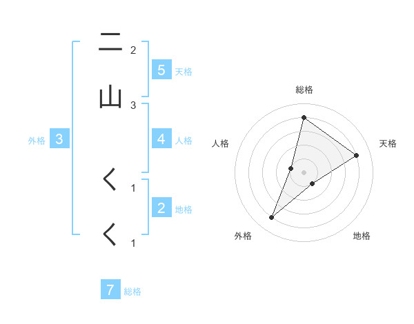 二山 くくさんの総格は7画の4点!