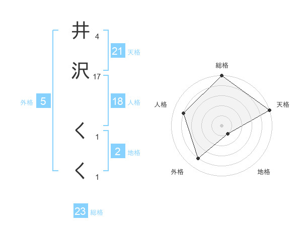 井沢 くくさんの総格は23画の5点!