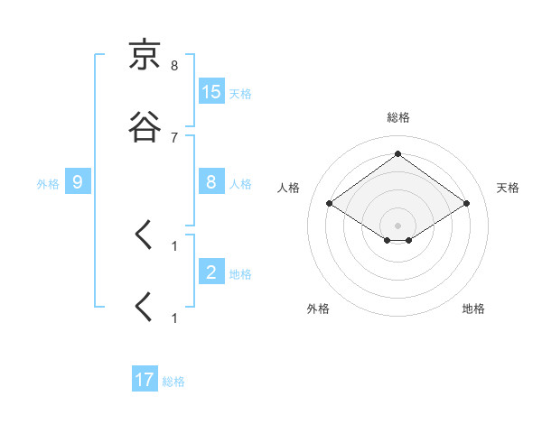 京谷 くくさんの総格は17画の4点!