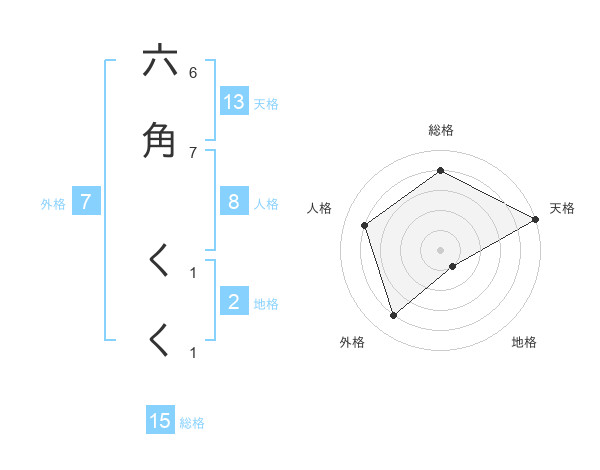 六角 くくさんの総格は15画の4点!