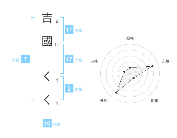 吉國 くくさんの総格は19画の1点!