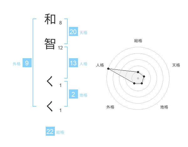 和智 くくさんの総格は22画の1点!