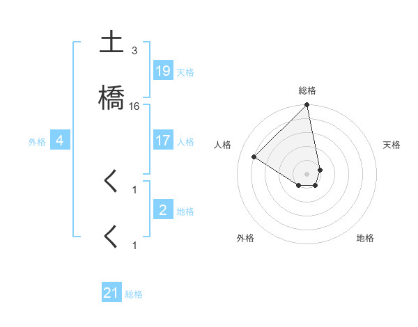 家系が持つ宿命的な運勢を表します。祖先から受け継いだ苗字ですので自分の力が及びません。家柄を象徴します。