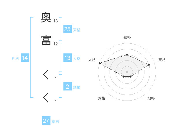 家系が持つ宿命的な運勢を表します。祖先から受け継いだ苗字ですので自分の力が及びません。家柄を象徴します。
