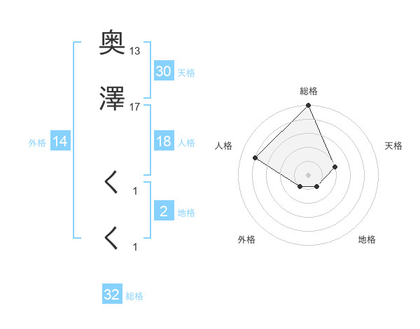 奥澤 くくさんを姓名の画数から五運を鑑定