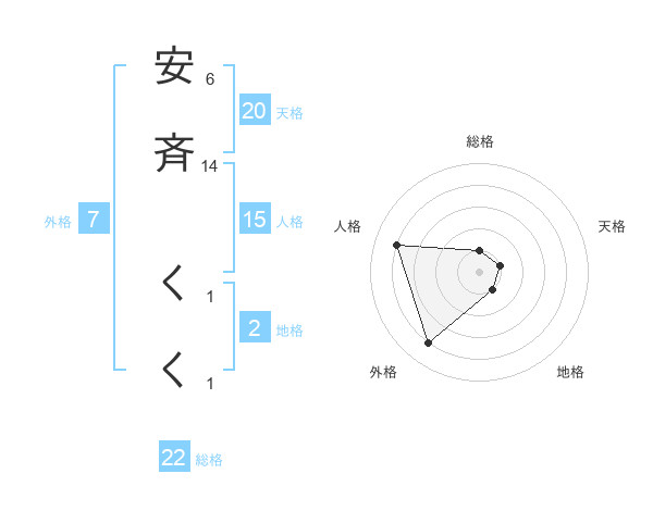 安斉 くくさんの総格は22画の1点!