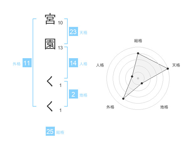 家系が持つ宿命的な運勢を表します。祖先から受け継いだ苗字ですので自分の力が及びません。家柄を象徴します。