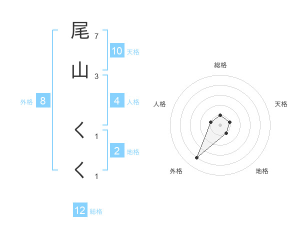 尾山 くくさんの外格は8画の4点!