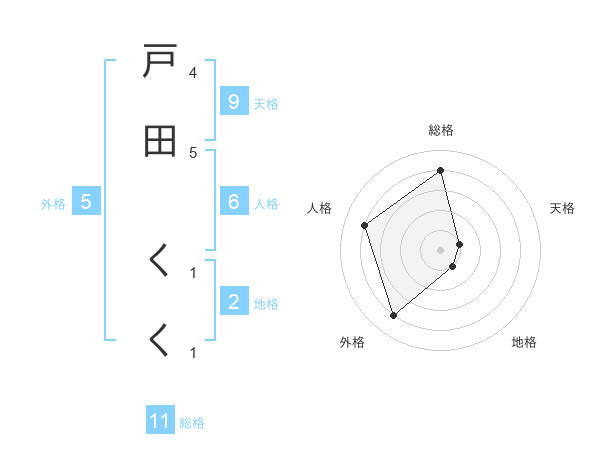 戸田 くくさんの総格は11画の4点!