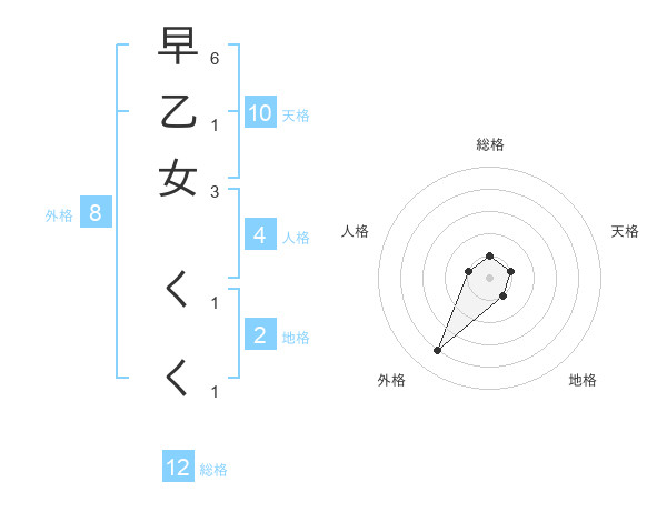 早乙女 くくさんを姓名の画数から五運を鑑定