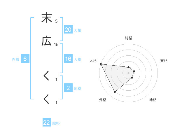 末広 くくさんの総格は22画の1点!