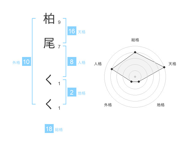 柏尾 くくさんの天格は16画の5点!
