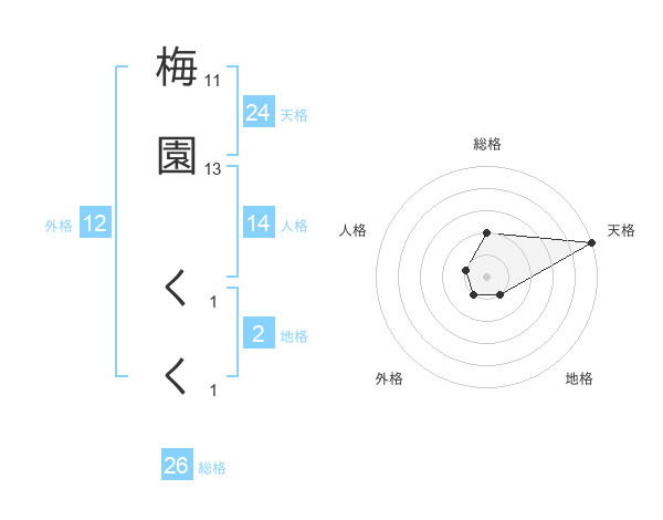 家系が持つ宿命的な運勢を表します。祖先から受け継いだ苗字ですので自分の力が及びません。家柄を象徴します。