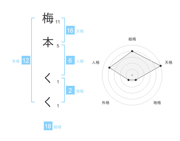 梅本 くくさんの総格は18画の4点!