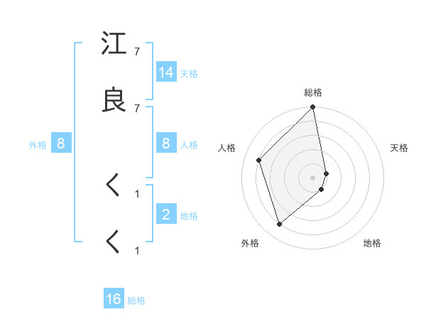 江良 くくさんの総格は16画の5点!