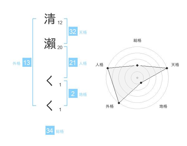 清瀨 くくさんの天格は32画の5点!