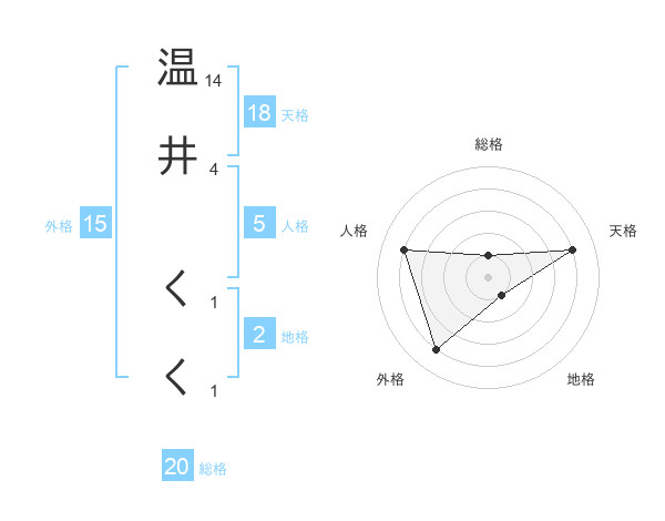 温井 くくさんの総格は20画の1点!