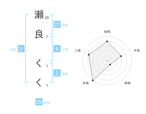 瀬良 くくさんを姓名の画数から五運を鑑定