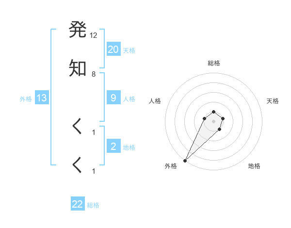 発知 くくさんの総格は22画の1点!