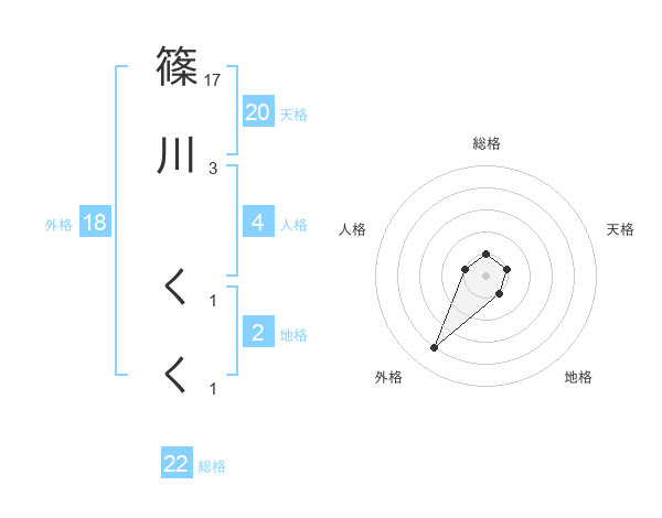 篠川 くくさんの総格は22画の1点!