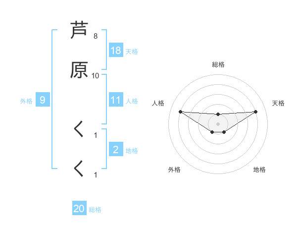 芦原 くくさんの総格は20画の1点!