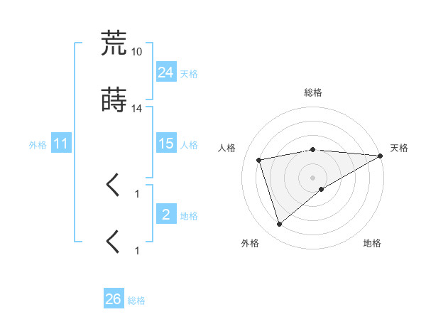 荒蒔 くくさんを姓名の画数から五運を鑑定